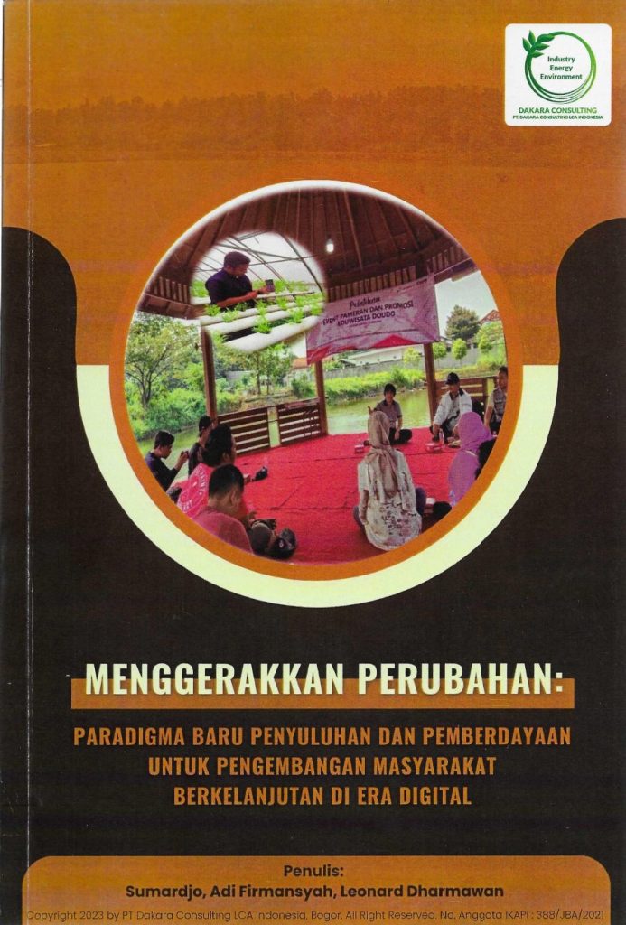 Penyuluhan dan pemberdayaan memainkan peran penting dalam pengembangan masyarakat berkelanjutan, terutama di era digital. Era digital telah membawa perubahan besar dalam paradigma penyuluhan dan komunikasi pembangunan dan cara masyarakat berkomunikasi, berbagai informasi, dan mengakses sumber daya. Dalam buku ini, dijelaskan dinamika perubahan paradigma penyuluhan dan pemberdayaan alam konteks pengembangan masyarakat berkelanjutan di era digital. Teknologi komunikasi digital berkembang sangat pesat dan menjadi suatu keniscayaan, tetapi belum sepenuhnya diikuti dengan sikap adaptasi yang tepat dalam implementasi di kehidupan masyarakat, sehingga terjadi kesenjangan informasi (unequity digital communication). Kesenjangan informasi ini berdampak pada kesenjangan kemampuan masyarakat dalam beradaptasi terhadap dinamika perubahan lingkungan strategisnya. Dibutuhkan konsep yang implementatif tentang sinergi komunikasi dan penyuluhan pembangunan dalam implementasi pembangunan nasional